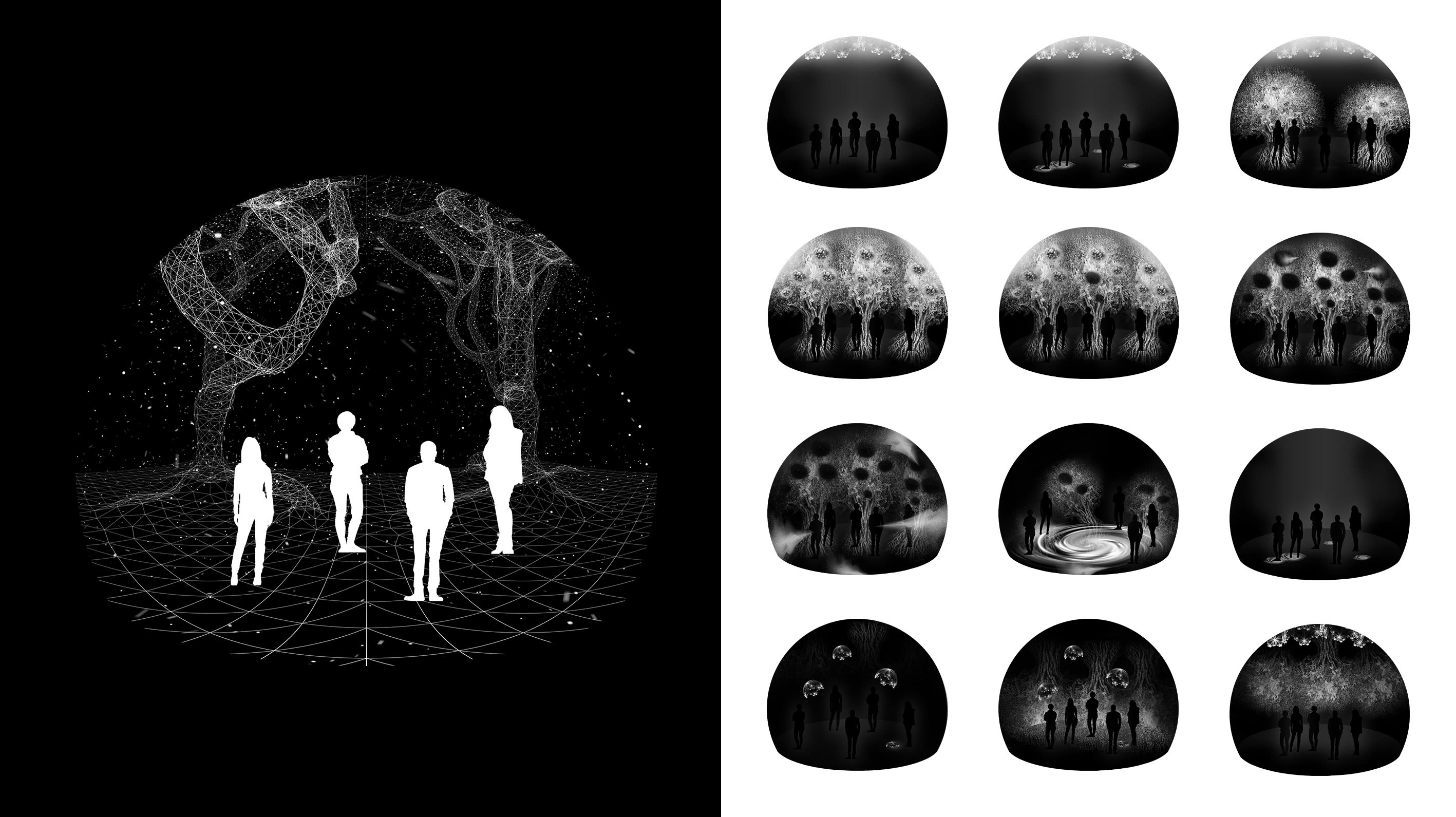 Laila shuffles the conventional set up of a performance: Instead of there being the active stage and the more passive auditorium, the conductor and star soloists, Laila invites you under the dome of a virtual universe where the reality will be formed through an interaction between you and the other experiencers - along with your avatars.