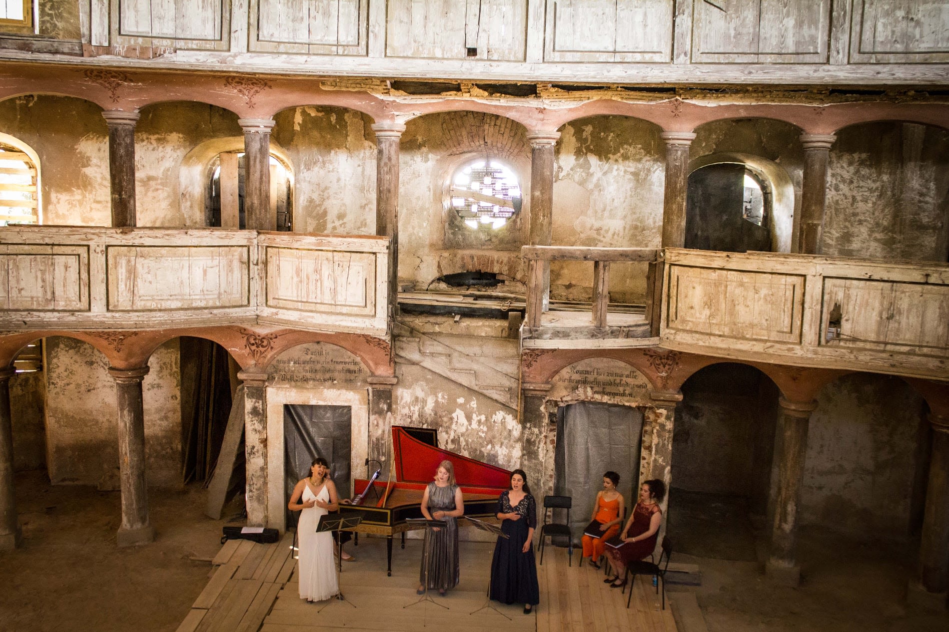 The central place of the project will be the “Pearl of Żeliszów“, a beautiful abandoned former German Protestant church built in 1796 by Carl Langhans in classicist style, meanwhile famous through the internet as a “lost place“ with a magical light. In the year 2013 a group of young Polish artists created the foundation “Your Heritage“ in order to save this gem from decay. The foundation soon became the owner of the place, and in 2018 a fruitful collaboration was established with the German society "Ars Augusta e.V." in order to transform the former church into a multicultural arena, especially for music and theatre. In 2020 an international academy workshop took place with Madrigals of Claudio Monteverdi, culminating in a public concert for donations. Now renovation works are proceeding, and soon we will change the status of this place from “lost“ to “found again“.